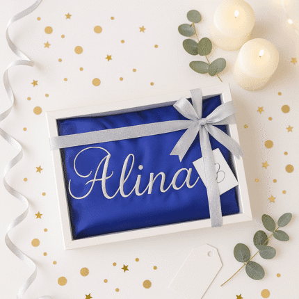 Set Pernuta si Paturica Brodata Personalizat – Cadou Perfect pentru Bebelusi si Copii